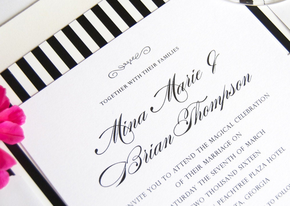 • Invitations are printed on new "Signature Paper" which is a thick and luxurious stock, usually reserved for fine stationery printing. 130lb, 16 point thickness.