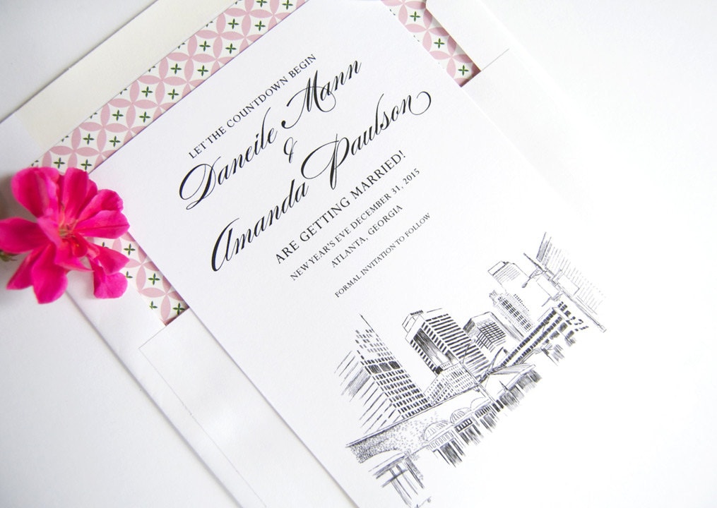 Atlanta, Georgia Wedding Skyline Save the Date Cards, Save the Dates (set of 25 cards and white envelopes)