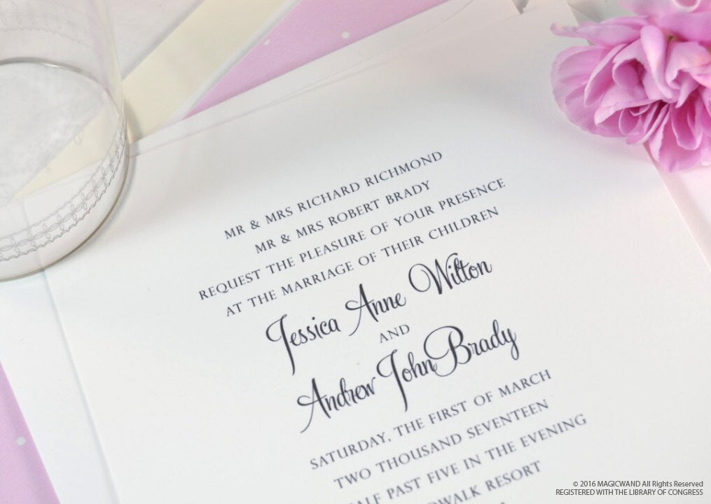 • Invitations are printed on the finest quality heavy 184lb Crane fine stationery paper.