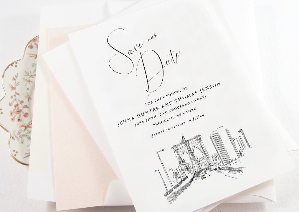 Brooklyn Skyline Save the Dates, STD, Save the Date Cards, New York, NY Wedding, NYC, Bridge (set of 25 cards)