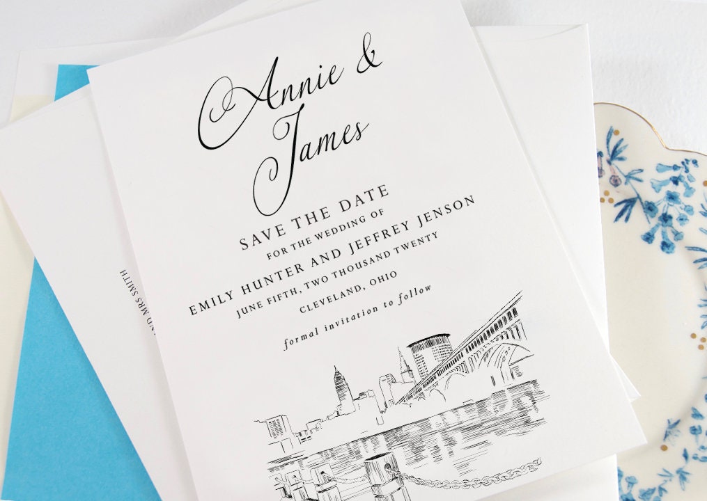 Cleveland Skyline Save the Dates, STD, Cleveland Wedding, Save the Date Cards, Ohio Weddings (set of 25 cards)