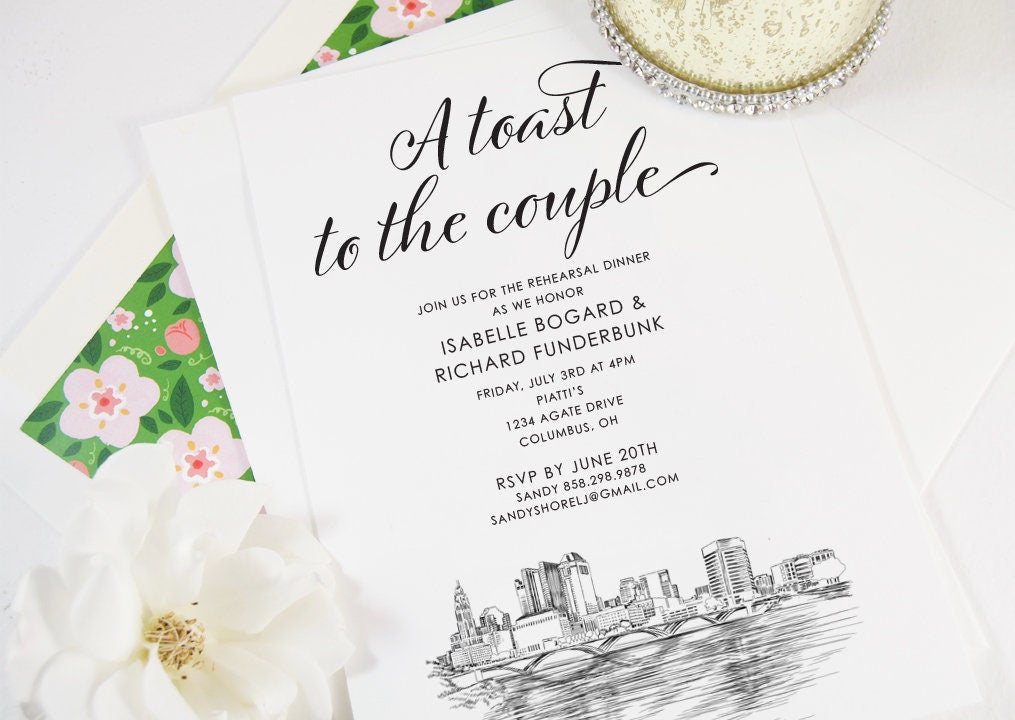 Columbus, Ohio Skyline Rehearsal Dinner Invitations, Columbus Weddings, Wedding Rehearsal (set of 25 cards)