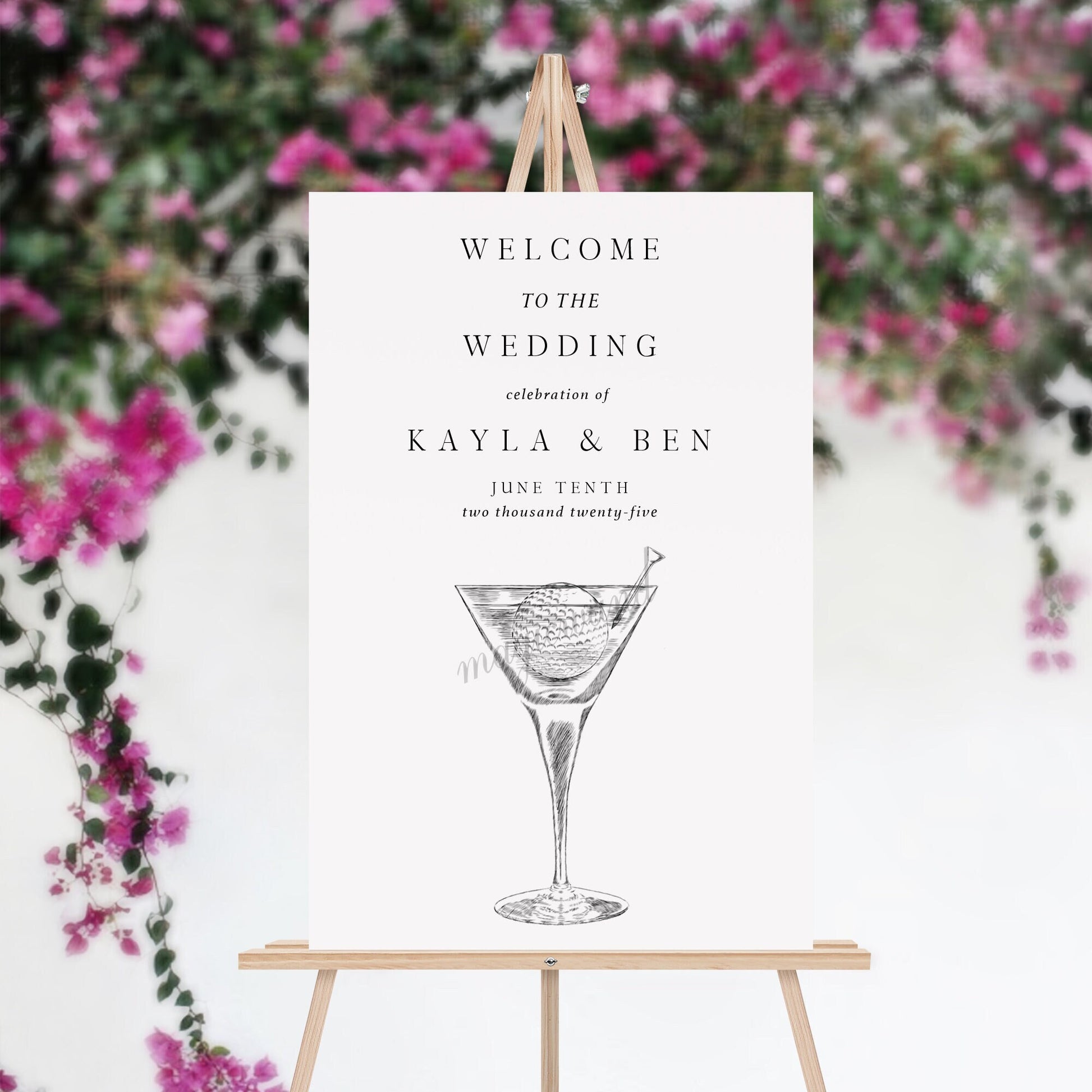 Golf Themed Welcome Wedding Sign, Engagement, Golf Ball, Martini Glass, Wedding, Welcome Sign, Unique Wedding Sign, Modern Wedding Sign,