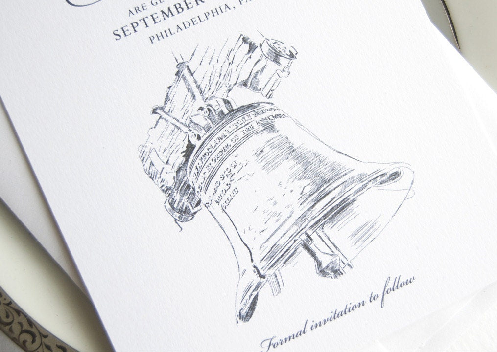 Liberty Bell, Philadelphia Skyline Save the Date Cards (set of 25 cards)