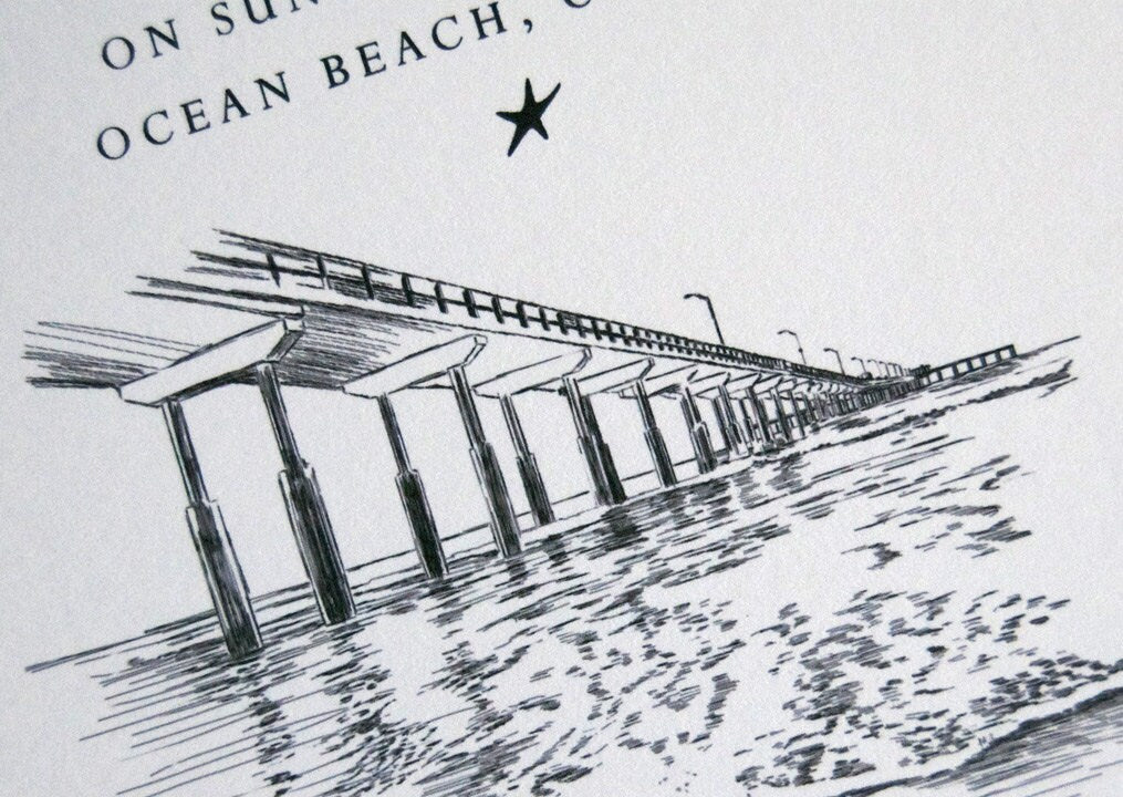 Our exclusive MagicWand artist in residence has captured the historical and contemporary beauty of the Ocean Beach, San Diego Beach Destination Skyline as seen like no other in our beautiful Save the Dates. Our Skylines are exquisitely and exclusively drawn for MagicWand Weddings. Our designs are also used by Celebrity Event Planners who love our creativity to create luxurious one of a kind designs. We offer font changes and font color options at no additional charge…just ask! This design is also available in wedding invitations, rehearsal dinner invitations and day of event paper such as, place cards, menu cards, table numbers and wedding programs.