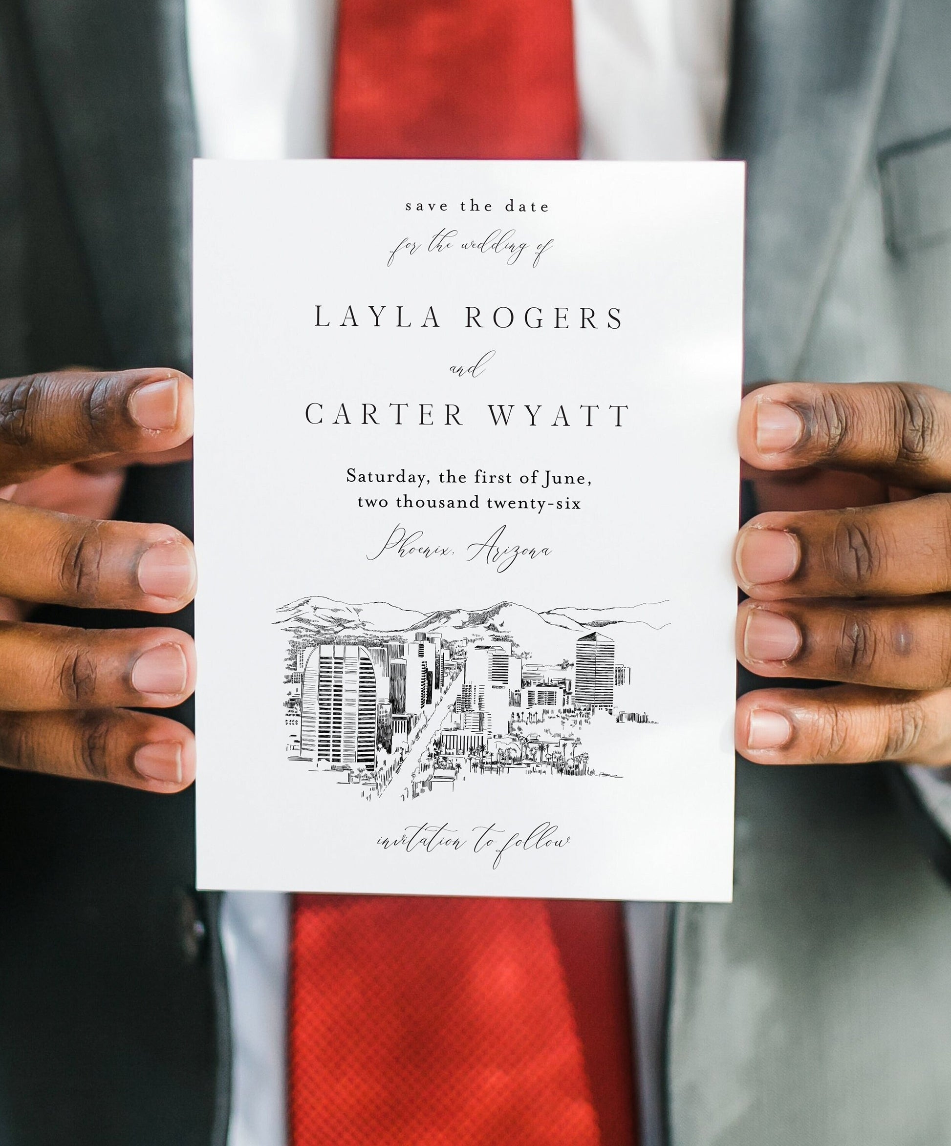 Phoenix Skyline Save the Dates, STD, Arizona, AZ Wedding, Save the Date Cards, Wedding, Weddings (set of 25 cards)