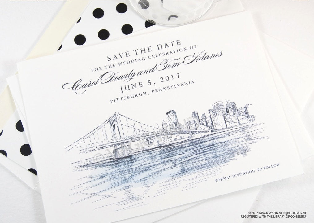 Pittsburgh Wedding Save the Date Cards, Save the Dates, Wedding, Hand Drawn (set of 25 cards)