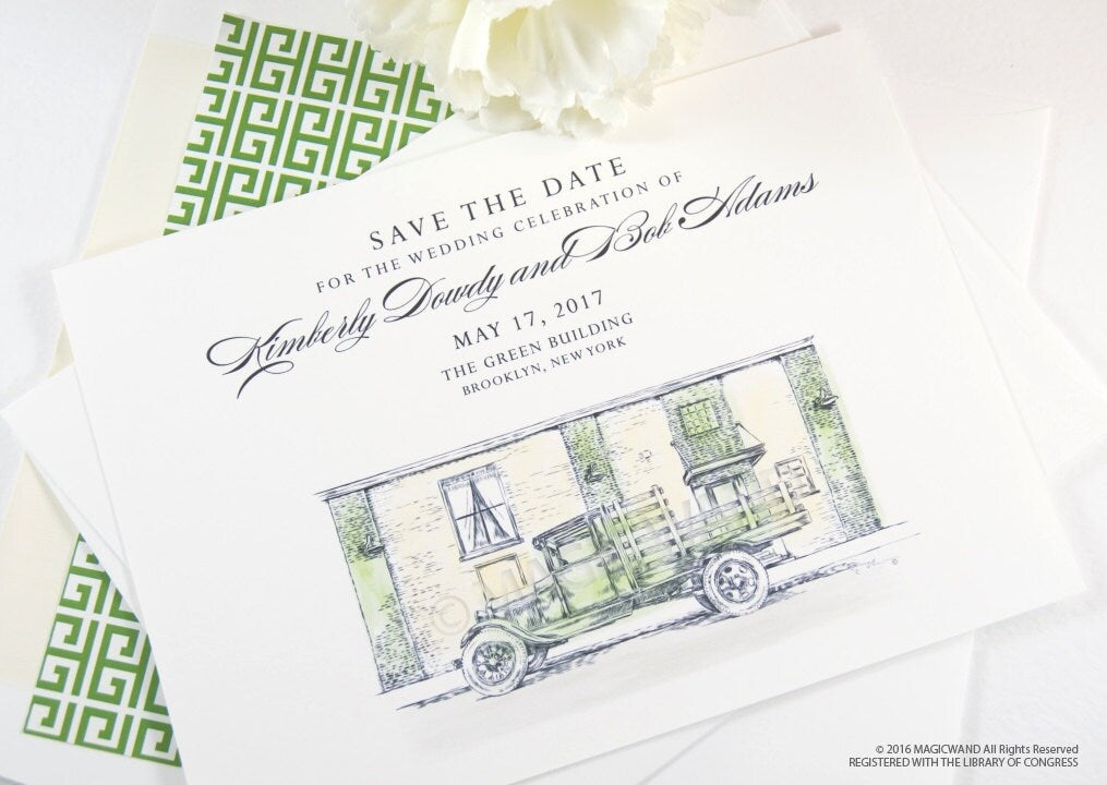 The Green Building, Brooklyn Wedding Save the Date Cards, Save the Dates, Wedding, Hand Drawn (set of 25 cards)