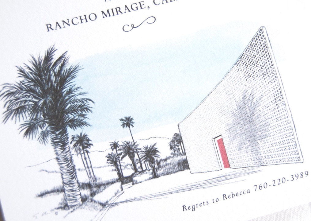 The Parker Palm Springs Destination Wedding Skyline Hand Drawn Rehearsal Dinner Invitations (set of 25 cards)