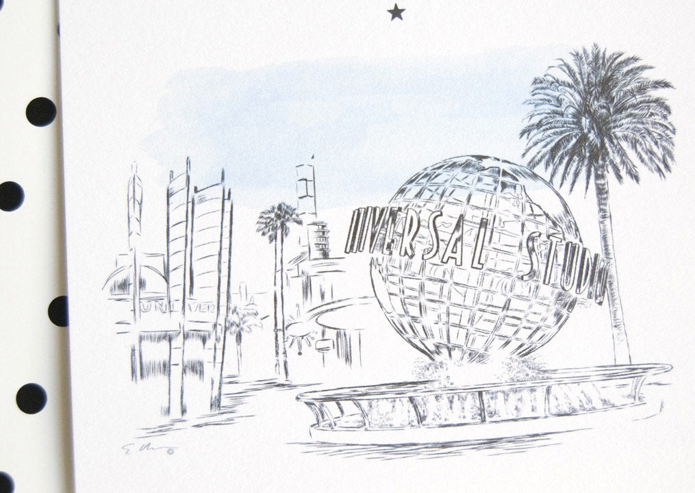 Universal Studios Skyline Hand Drawn Rehearsal Dinner Invitations (set of 25 cards)