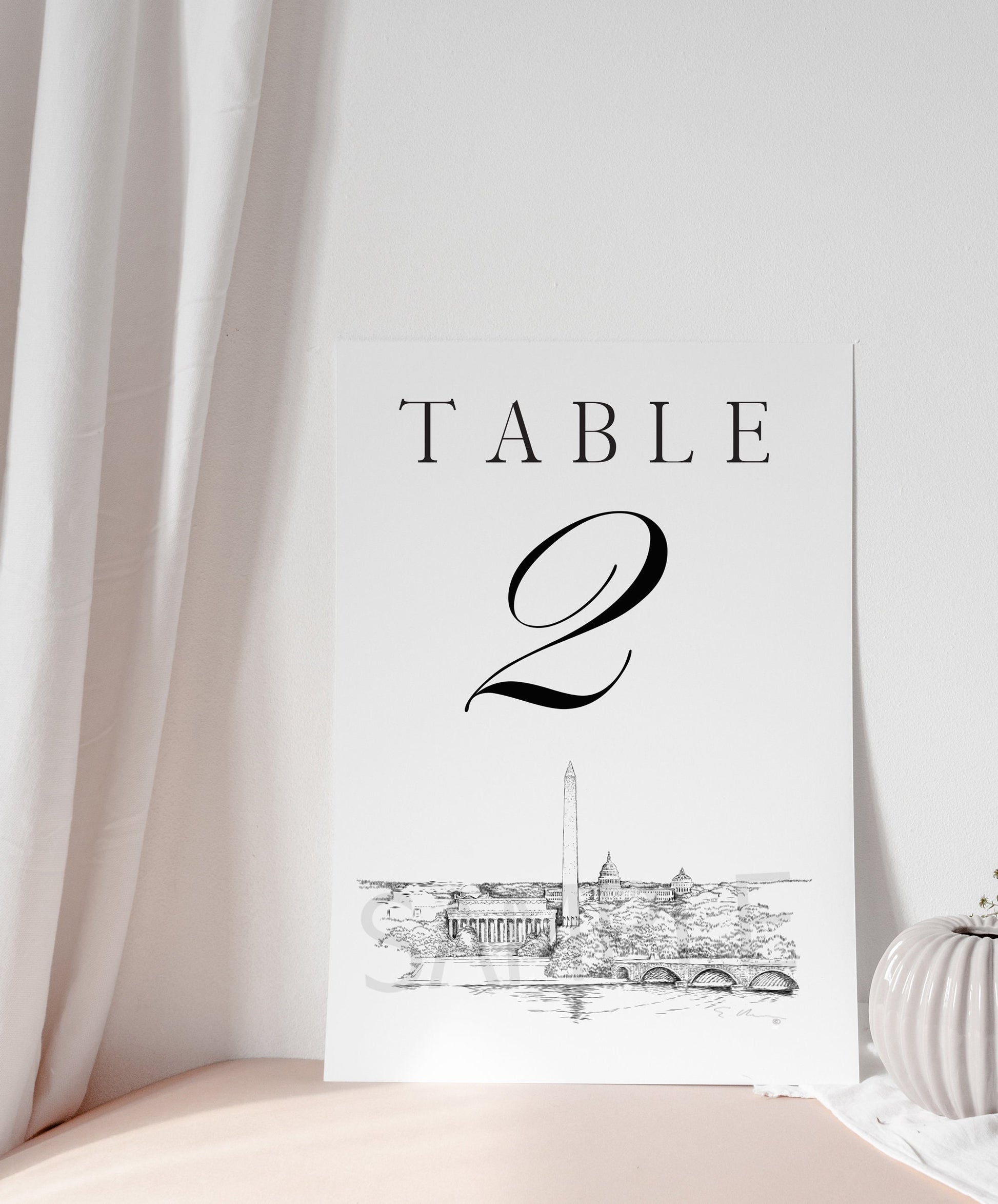 Washington, D.C. Memorials Skyline Table Numbers, Wedding Tables, Day of Event, Reserved Seating, Reception (1-10)