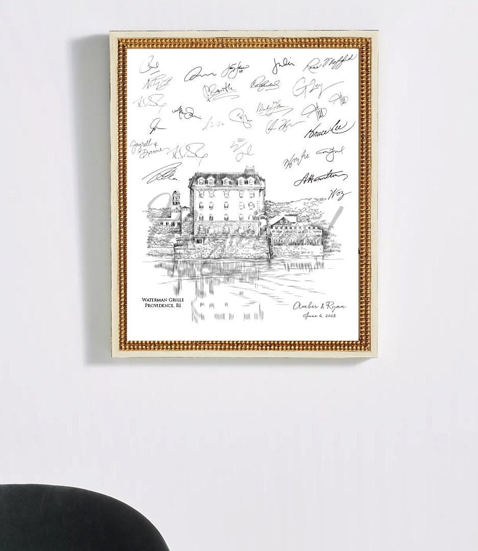 Professionally hand-drawn, like the Renaissance masters of art, your Waterman Grille Providence Guestbook print is sophisticated and fun. Your guests will enjoy an interactive experience to provide you signatures of your guests to commemorate your very special day. The drawings are exquisite artwork, suitable for framing to be appreciated with memories for years to come.