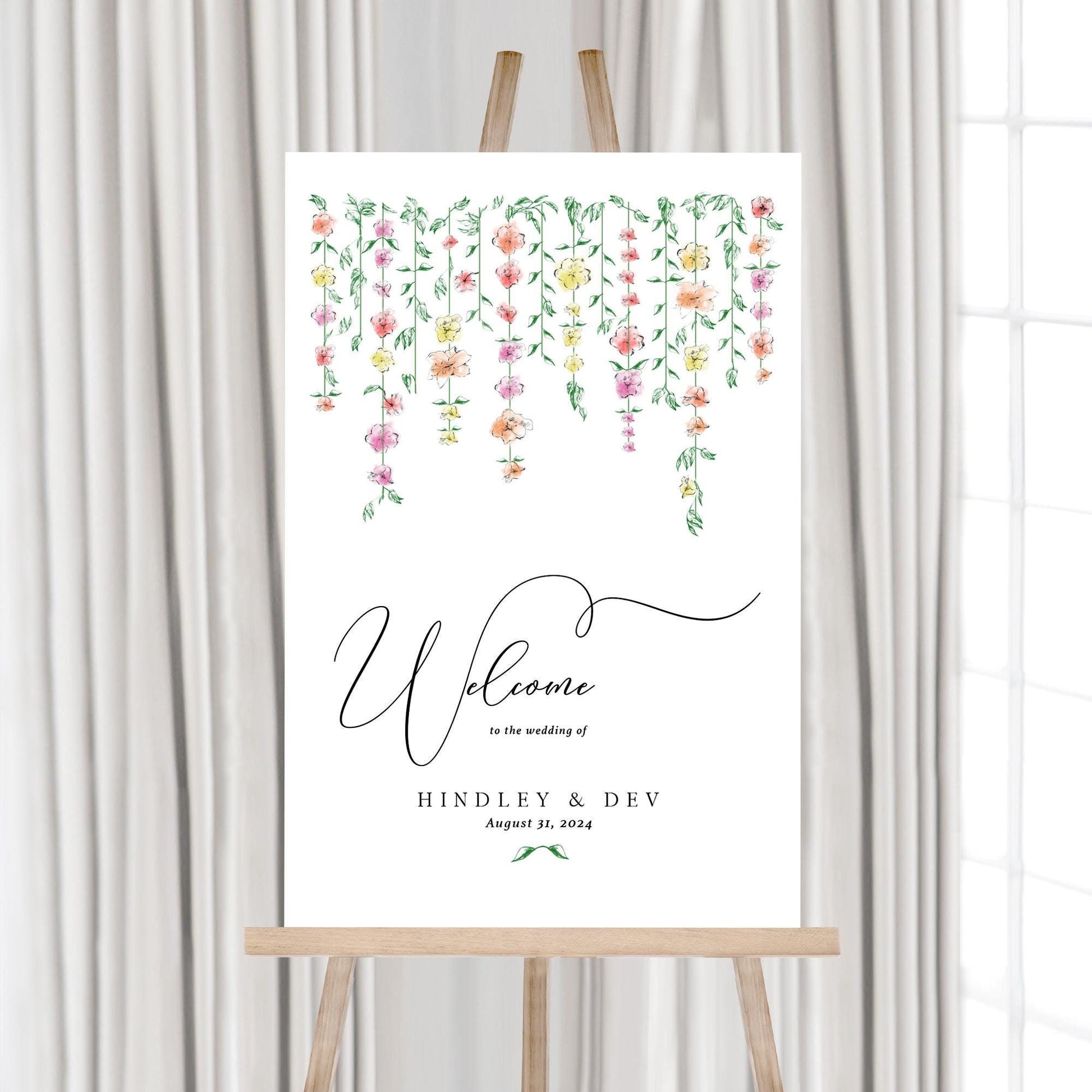 Welcome to our Wedding Sign, Mehndi Party Sign, Indian Wedding, Hindu, Hand Drawn, Watercolor Flowers, Sizes: 18 x 24, 24 x 36
