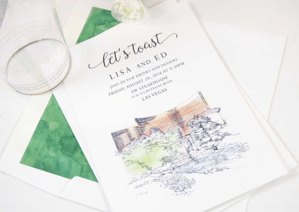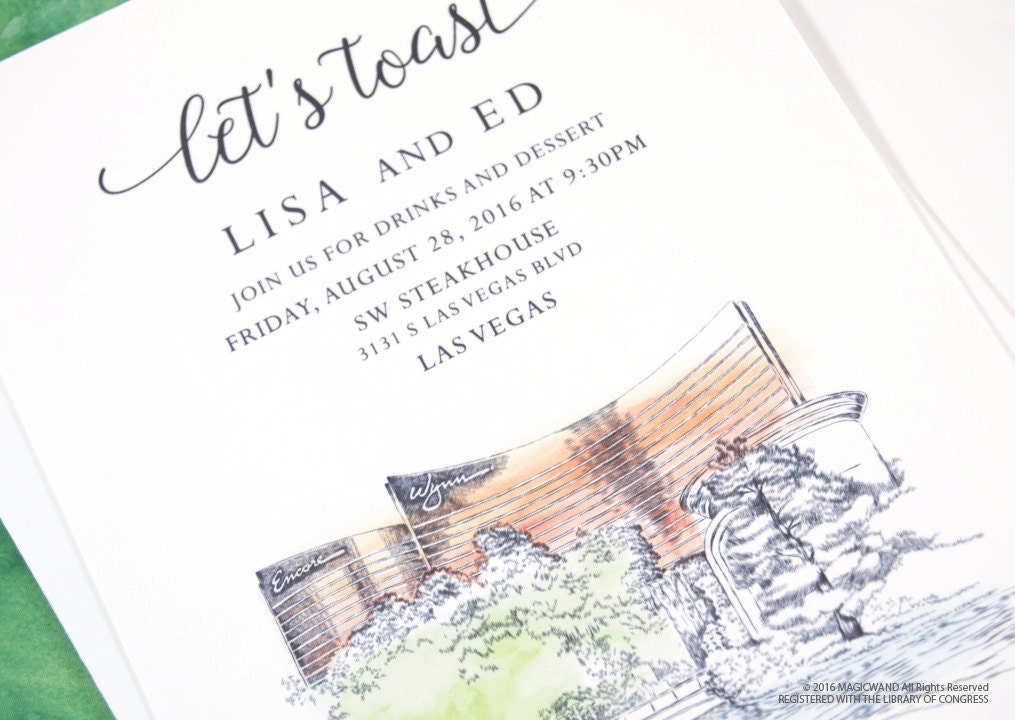 Wynn Hotel Las Vegas Skyline Rehearsal Dinner Invitations (set of 25 cards)